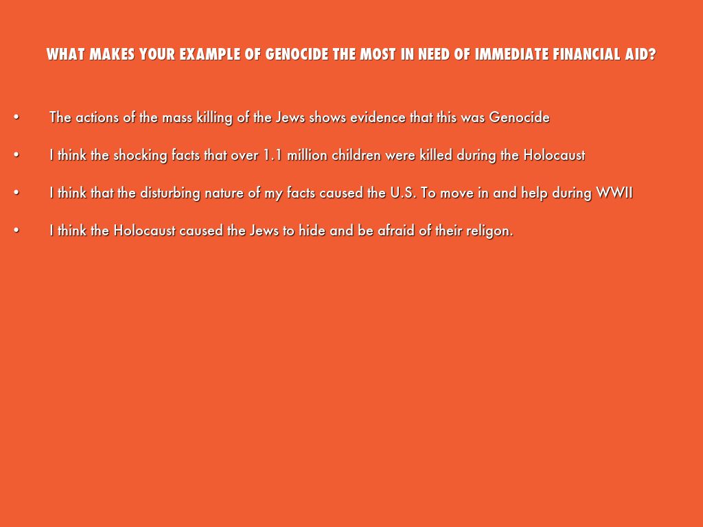 WHAT MAKES YOUR EXAMPLE OF GENOCIDE THE MOST IN NEED OF IMMEDIATE FINANCIAL AID?