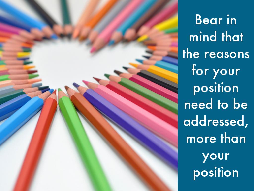 • Before discussing your bottom line, give reasons for your bottom line