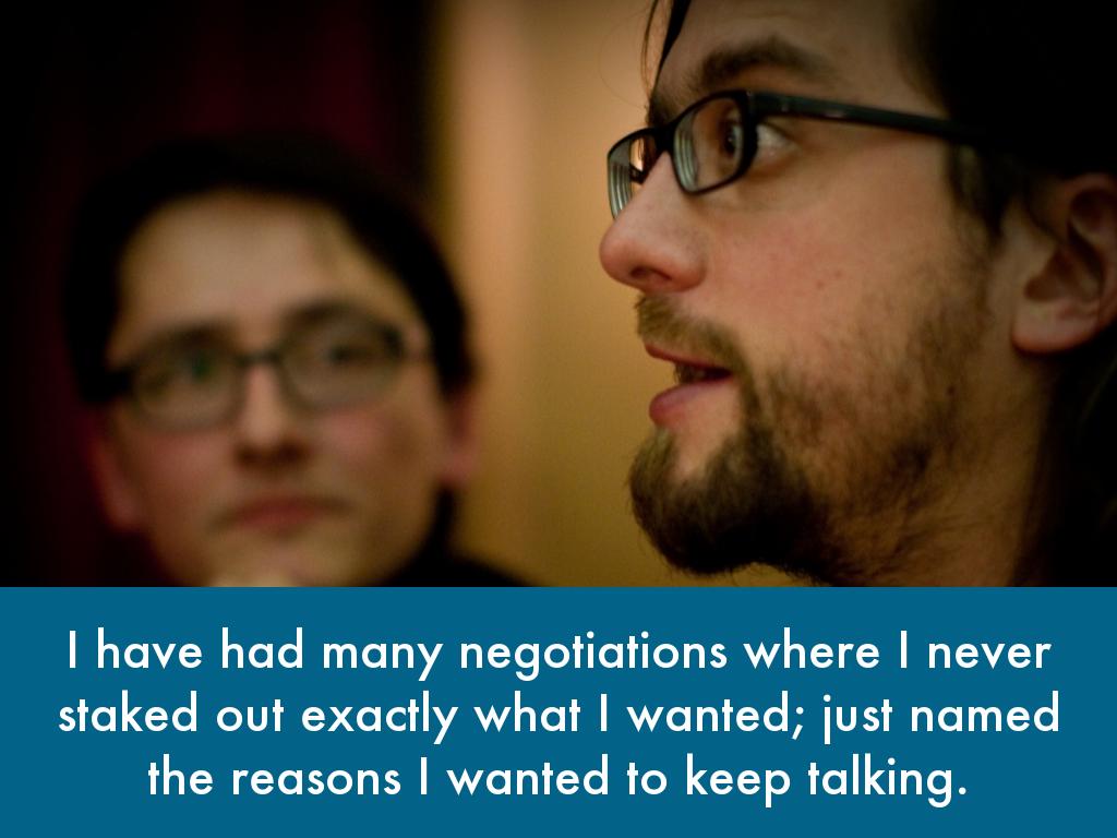 I have had many negotiations where I never staked out exactly what I wanted; just named the reasons I wanted to keep talking.