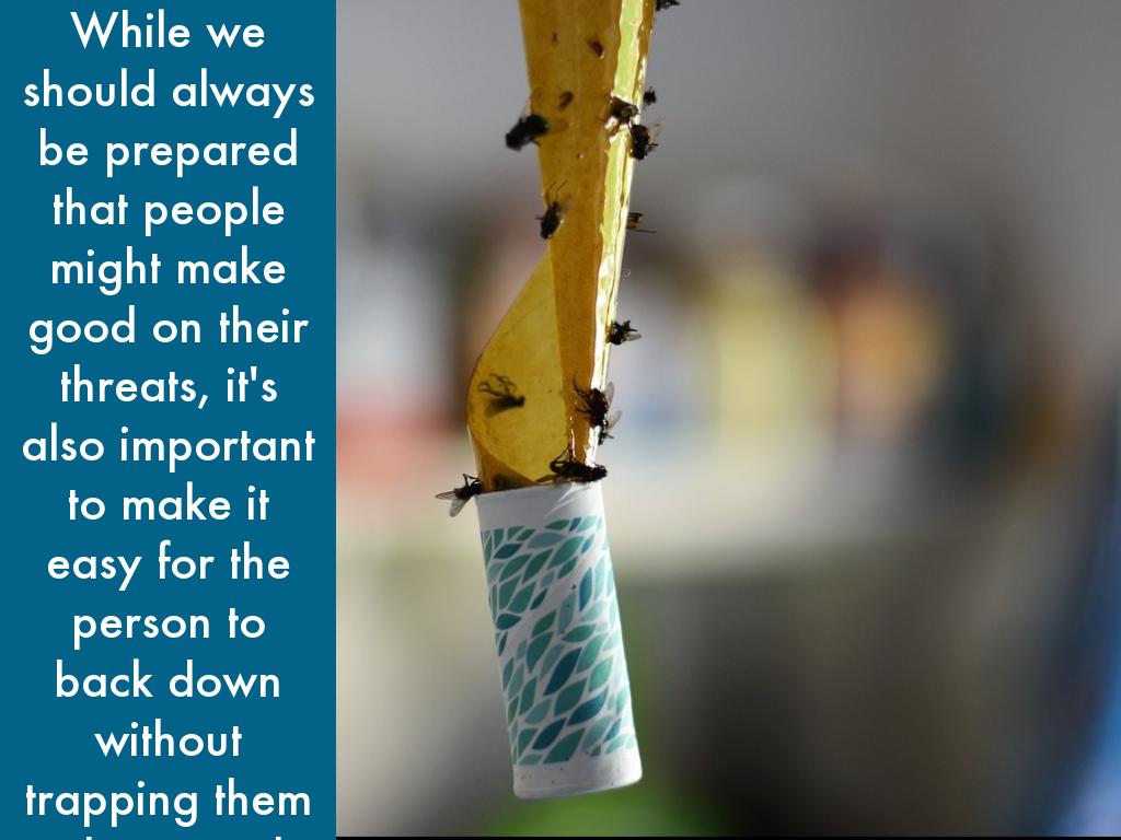 While we should always be prepared that people might make good on their threats, it's also important to make it easy for the person to back down without trapping them in their words.