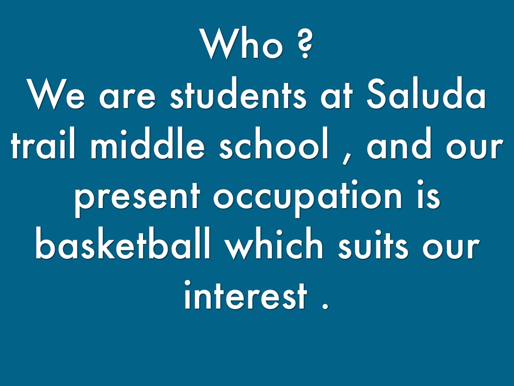We are students at Saluda trail middle school , and our present occupation is basketball which suits our interest .