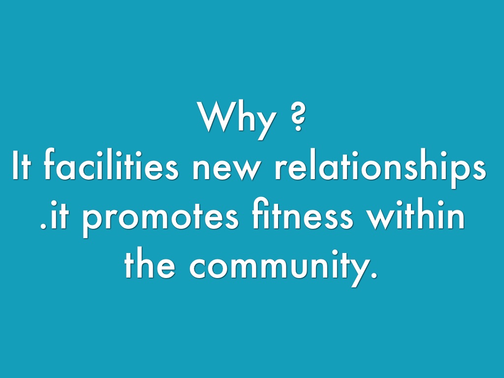 It facilities new relationships .it promotes fitness within the community.