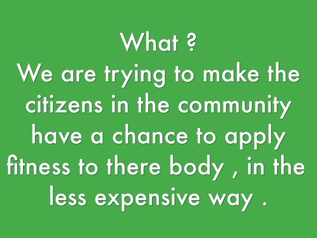 We are trying to make the citizens in the community have a chance to apply fitness to there body , in the less expensive way .