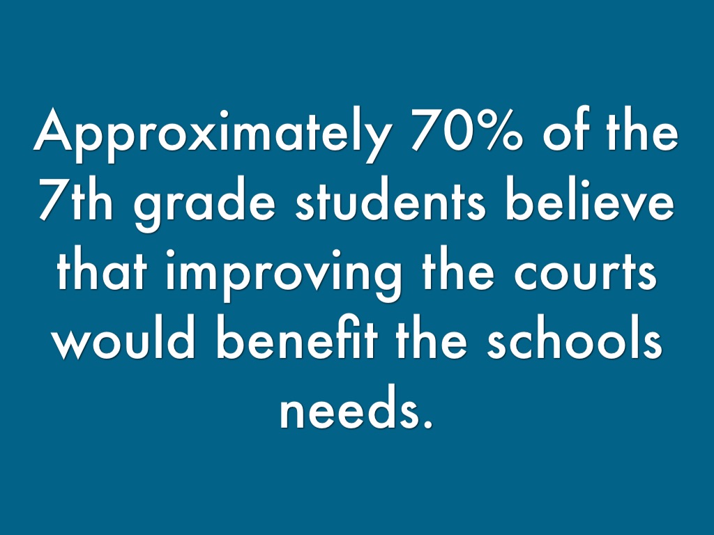 Approximately 70% of the 7th grade students believe that improving the courts would benefit the schools needs.