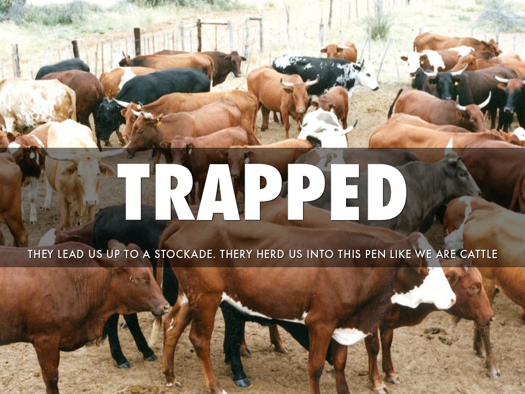 THEY LEAD US UP TO A STOCKADE. THERY HERD US INTO THIS PEN LIKE WE ARE CATTLE