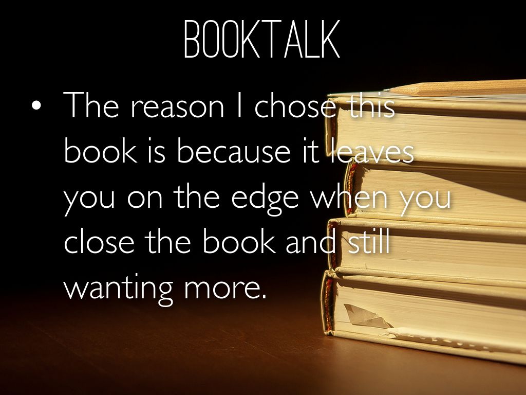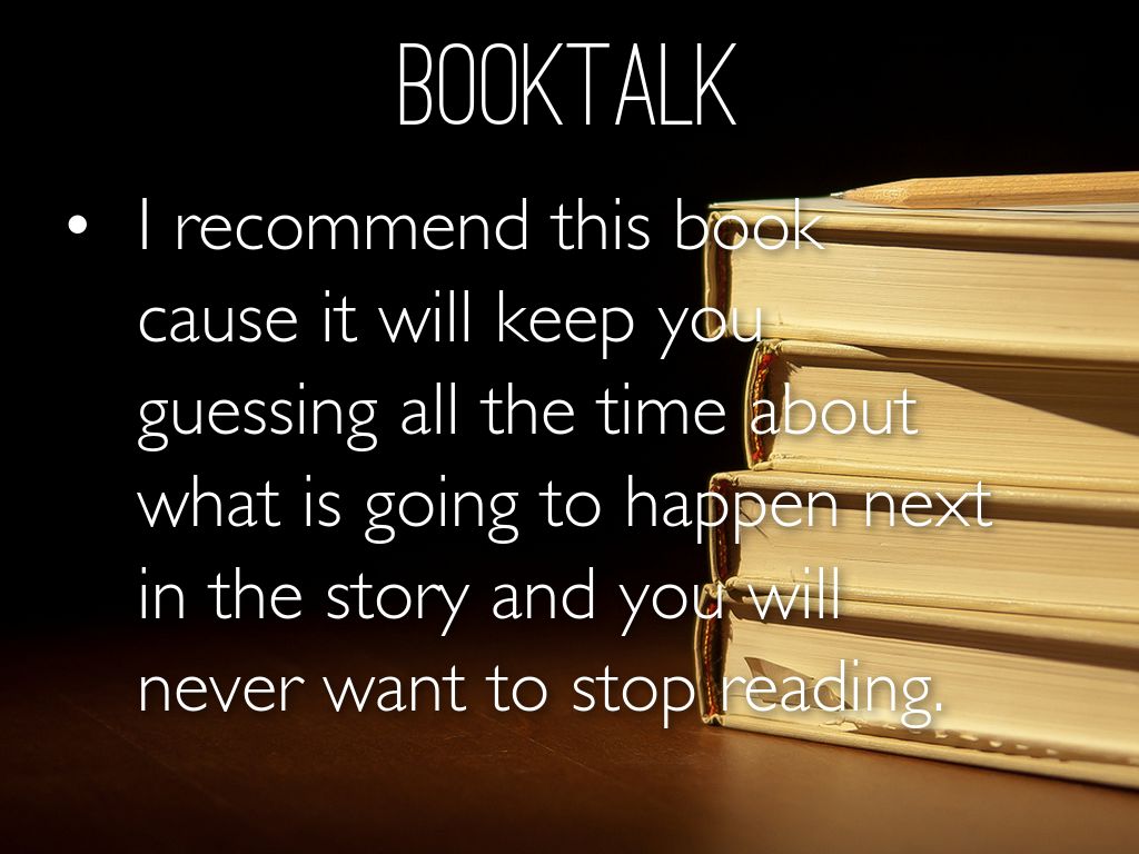 I recommend this book cause it will keep you guessing all the time about what is going to happen next in the story and you will never want to stop reading.