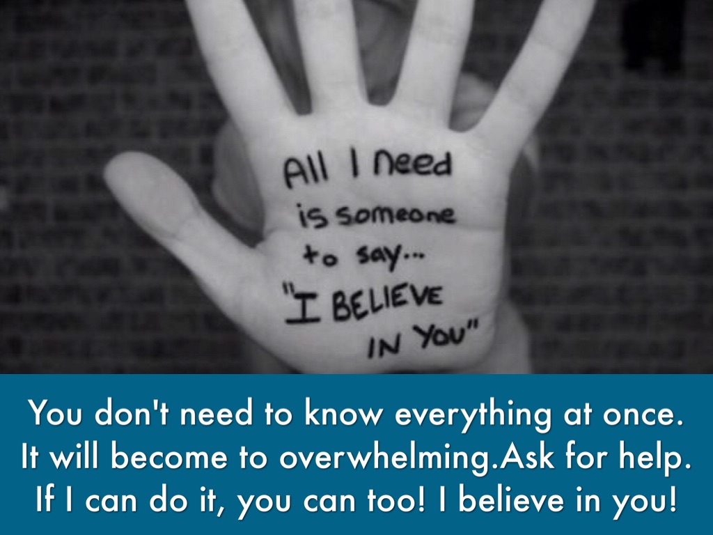 You don't need to know everything at once. It will become to overwhelming.Ask for help. If I can do it, you can too! I believe in you!