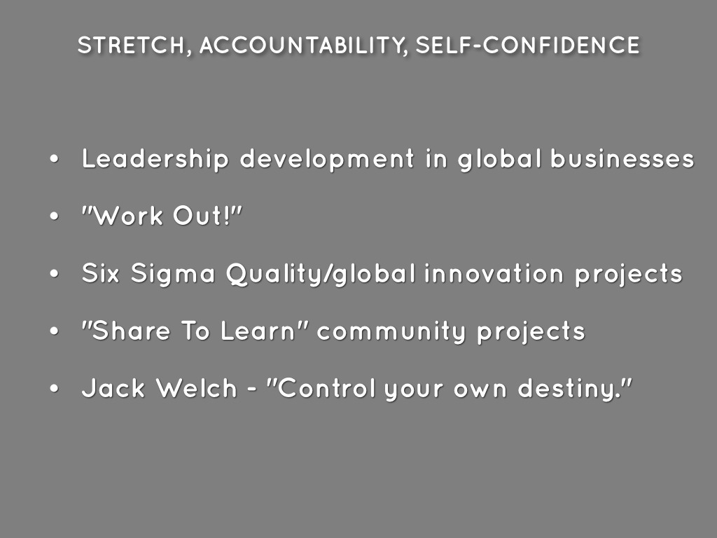 STRETCH, ACCOUNTABILITY, SELF-CONFIDENCE