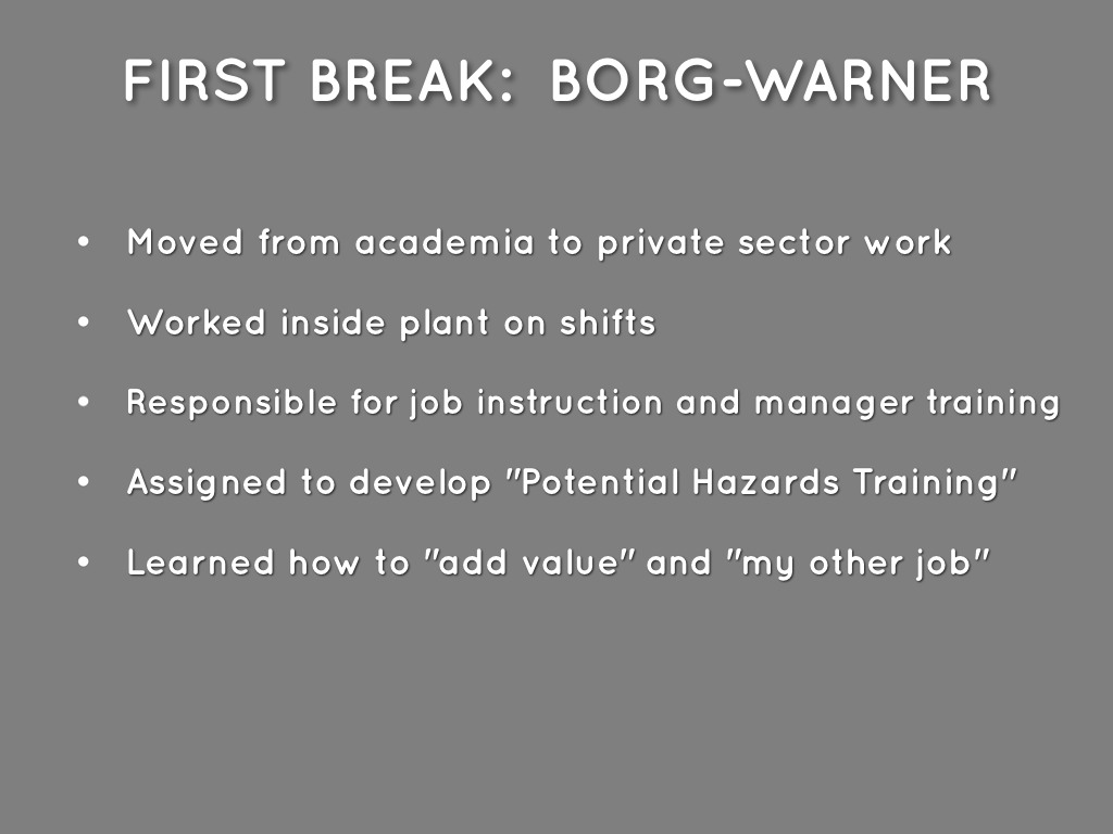 Borg-Warner (6 Yrs.) - Dir. Training & Management Dev't.