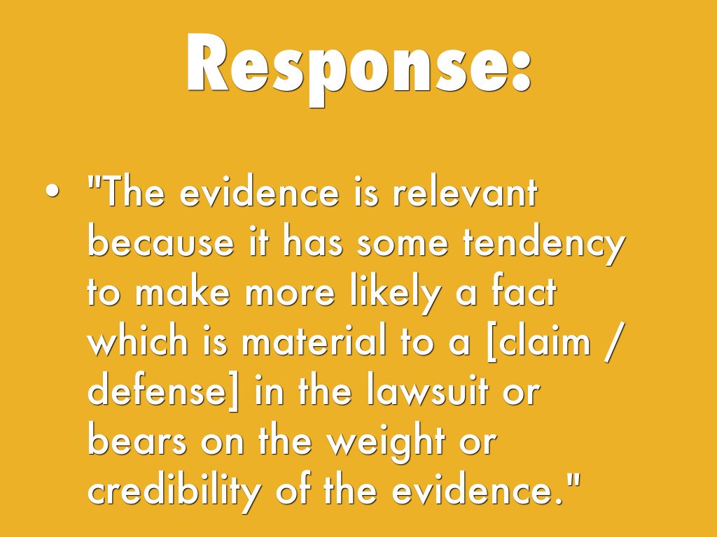 "The evidence is relevant because it has some tendency to make more likely a fact which is material to a [claim / defense] in the lawsuit or bears on the weight or credibility of the evidence."