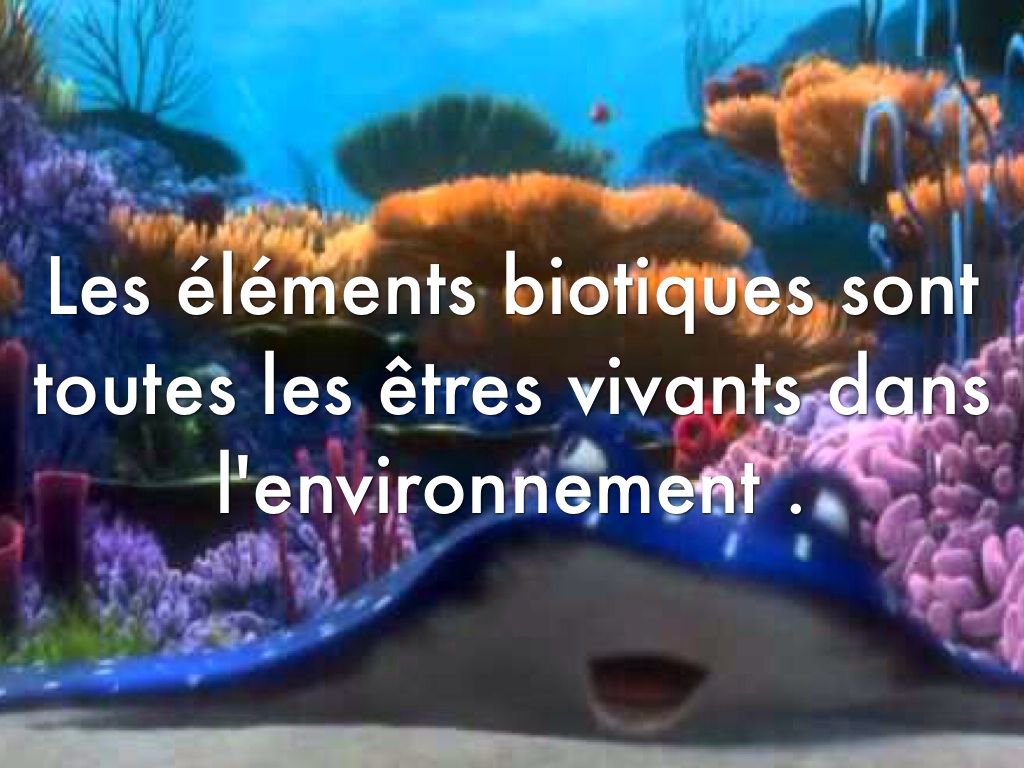 Les éléments biotiques sont toutes les êtres vivants dans l'environnement .