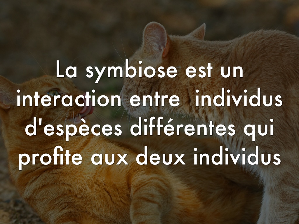 La symbiose est un interaction entre individus d'espèces différentes qui profite aux deux individus