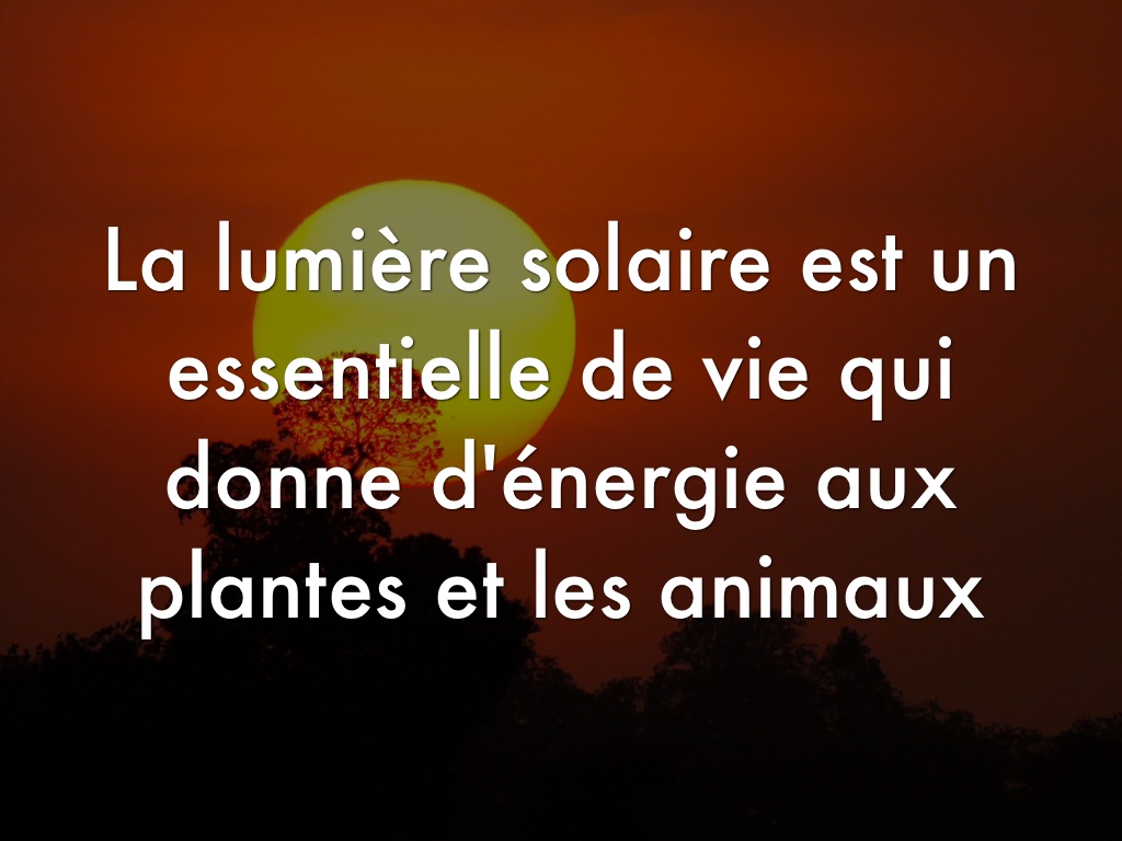 La lumière solaire est un essentielle de vie qui donne d'énergie aux plantes et les animaux
