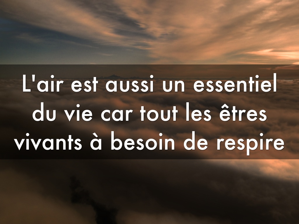 L'air est aussi un essentiel du vie car tout les êtres vivants à besoin de respire