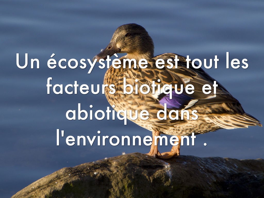 Un écosystème est tout les facteurs biotique et abiotique dans l'environnement .
