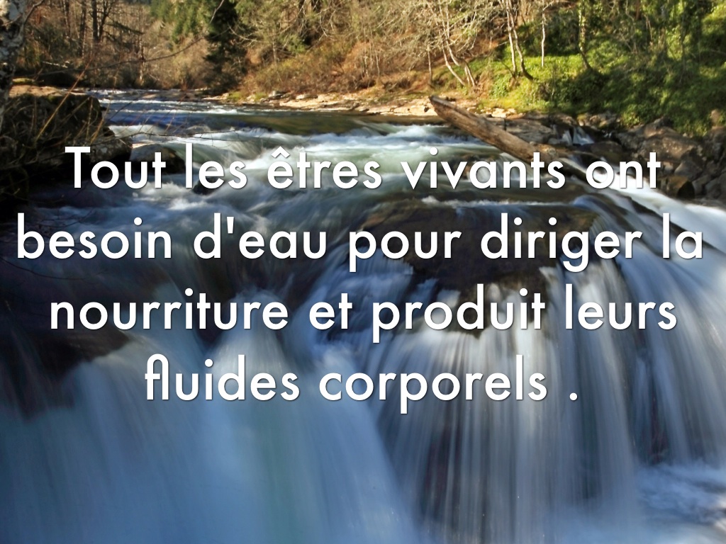 Tout les êtres vivants ont besoin d'eau pour diriger la nourriture et produit leurs fluides corporels .