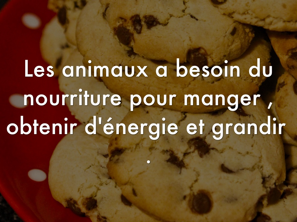 Les animaux a besoin du nourriture pour manger , obtenir d'énergie et grandir .