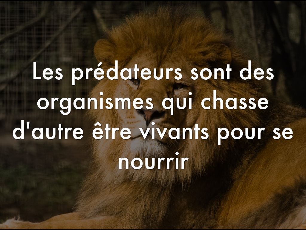 Les prédateurs sont des organismes qui chasse d'autre être vivants pour se nourrir