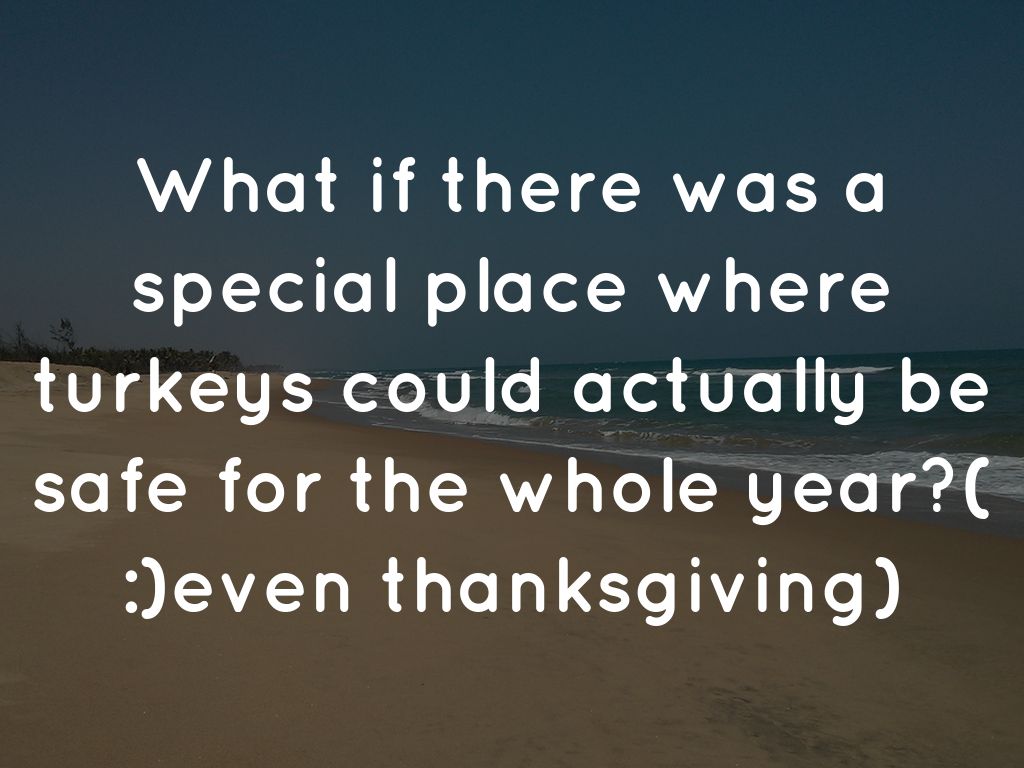 What if there was a special place where turkeys could actually be safe for the whole year?( :)even thanksgiving)