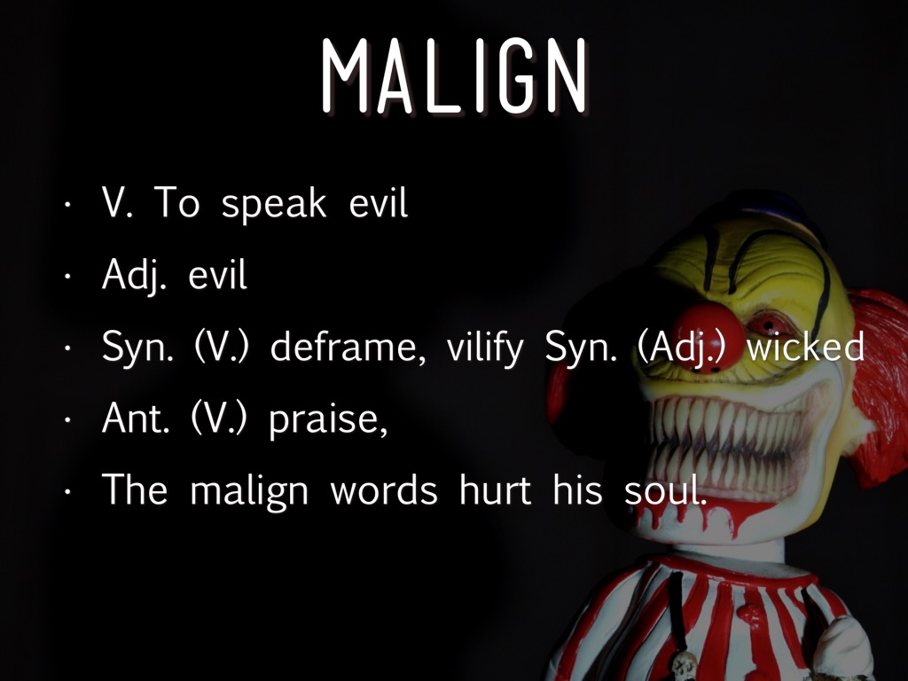 The malign words hurt his soul.