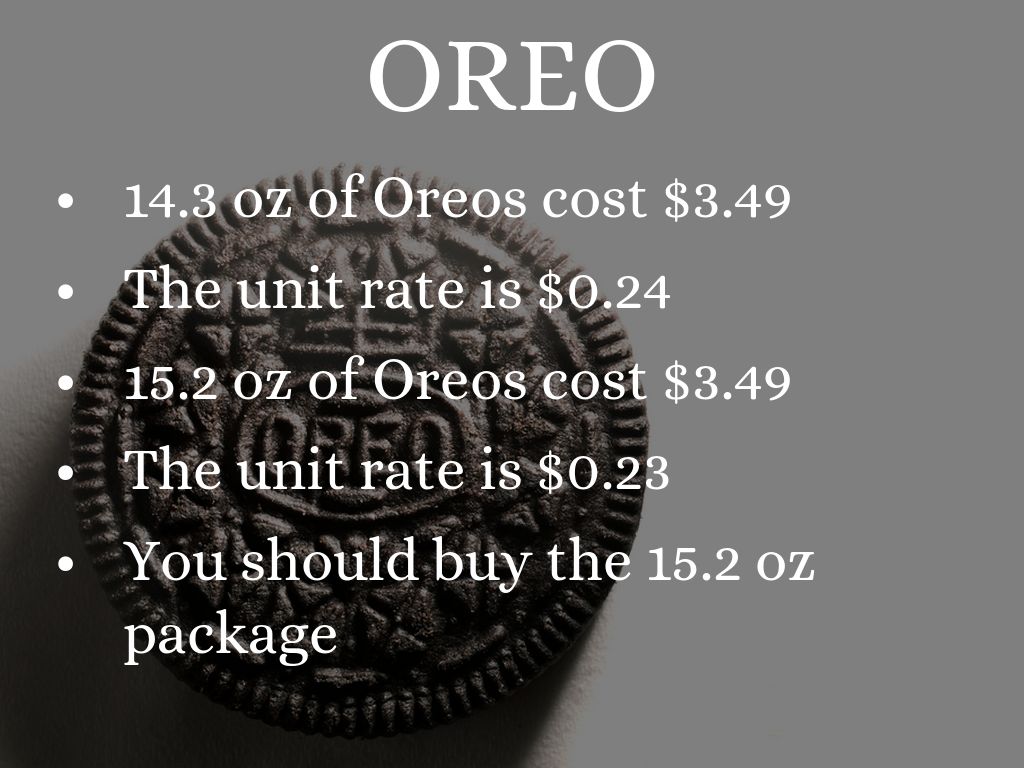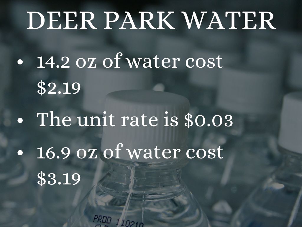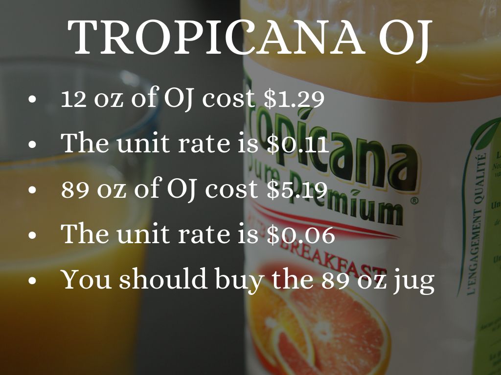 You first divide the cost of the item by how many oz, lbs, g, etc.