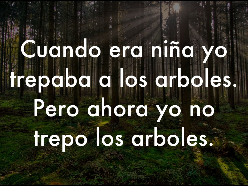 Cuando era niña yo trepaba a los arboles. Pero ahora yo no trepo los arboles.