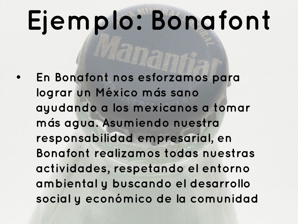 En Bonafont nos esforzamos para lograr un México más sano ayudando a los mexicanos a tomar más agua. Asumiendo nuestra responsabilidad empresarial, en Bonafont realizamos todas nuestras actividades, respetando el entorno ambiental y buscando el desarrollo social y económico de la comunidad
