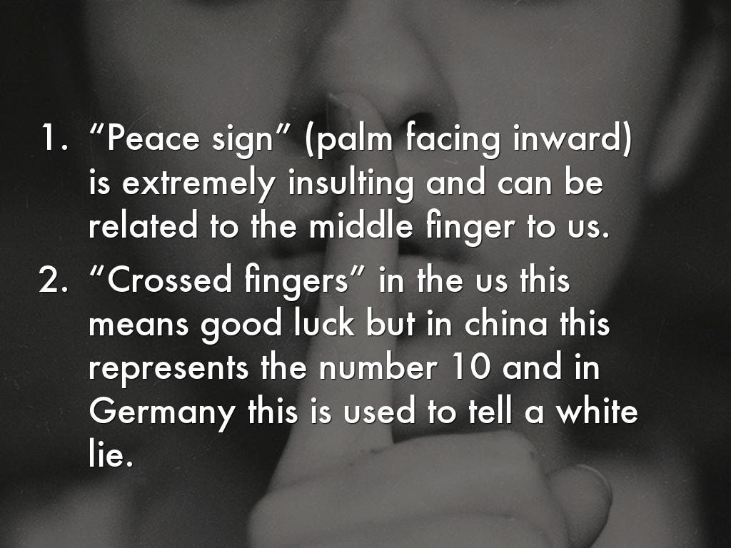• “Crossed fingers” in the us this means good luck but in china this represents the number 10 and in Germany this is used to tell a white lie.