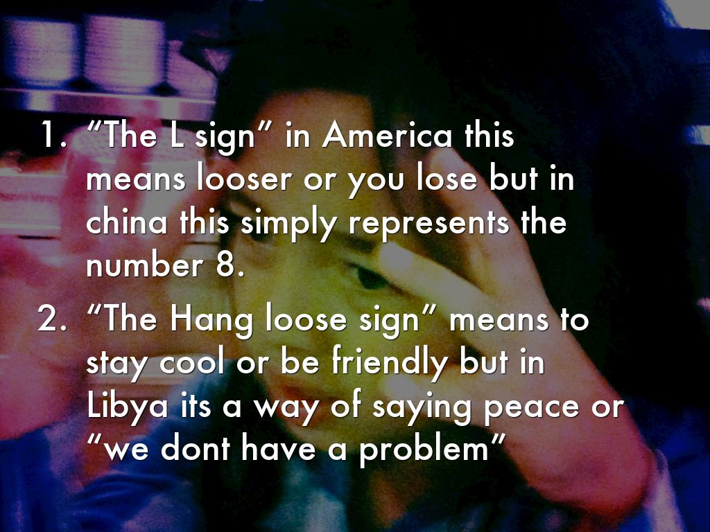 • “The L sign” in America this means looser or you lose but in china this simply represents the number 8.