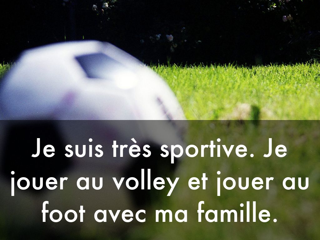 Je suis très sportive. Je jouer au volley et jouer au foot avec ma famille.
