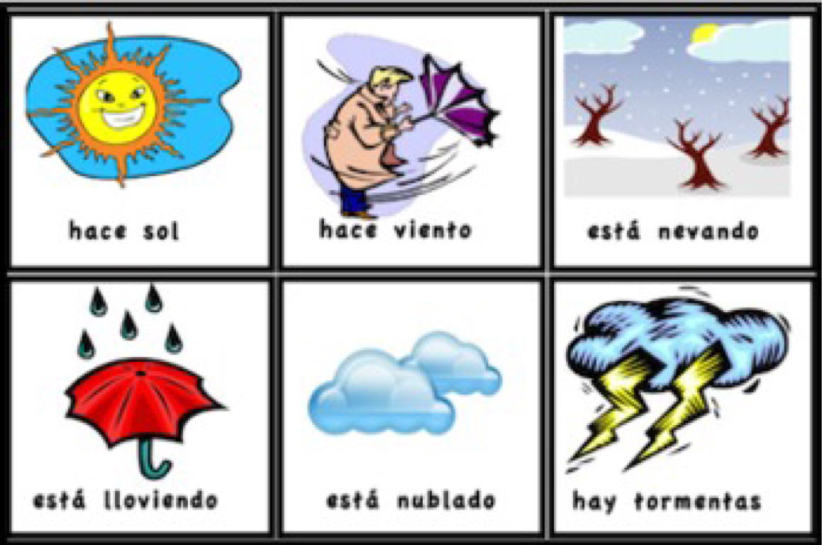 Complete sentence using weather,seasons,months,and days of the week in Spanish