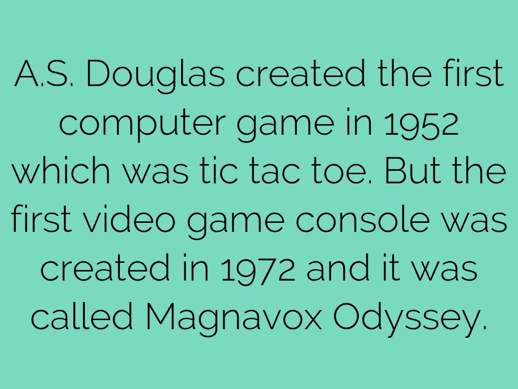 A.S. Douglas created the first computer game in 1952 which was tic tac toe. But the first video game console was created in 1972 and it was called Magnavox Odyssey.