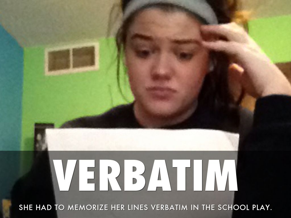 SHE HAD TO MEMORIZE HER LINES VERBATIM IN THE SCHOOL PLAY.