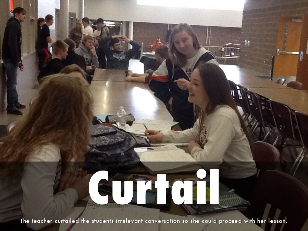 The teacher curtailed the students irrelevant conversation so she could proceed with her lesson.