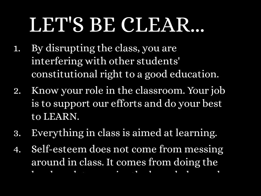 - By disrupting the class, you are interfering with other students' constitutional right to a good education.