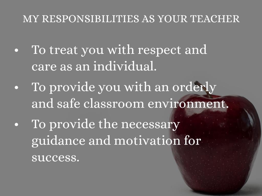 MY RESPONSIBILITIES AS YOUR TEACHER