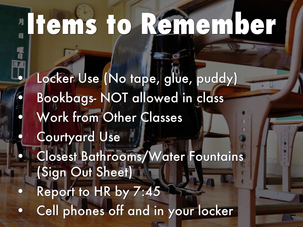 Closest Bathrooms/Water Fountains (Sign Out Sheet)