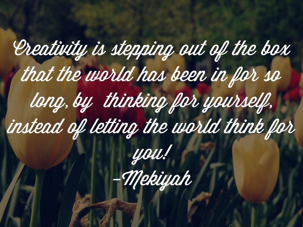 Creativity is stepping out of the box that the world has been in for so long, by thinking for yourself, instead of letting the world think for you! -Mekiyah