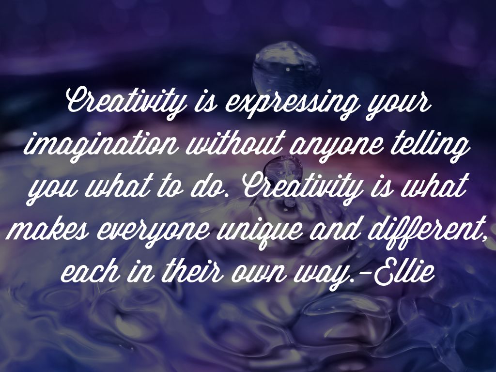 Creativity is expressing your imagination without anyone telling you what to do. Creativity is what makes everyone unique and different, each in their own way.-Ellie