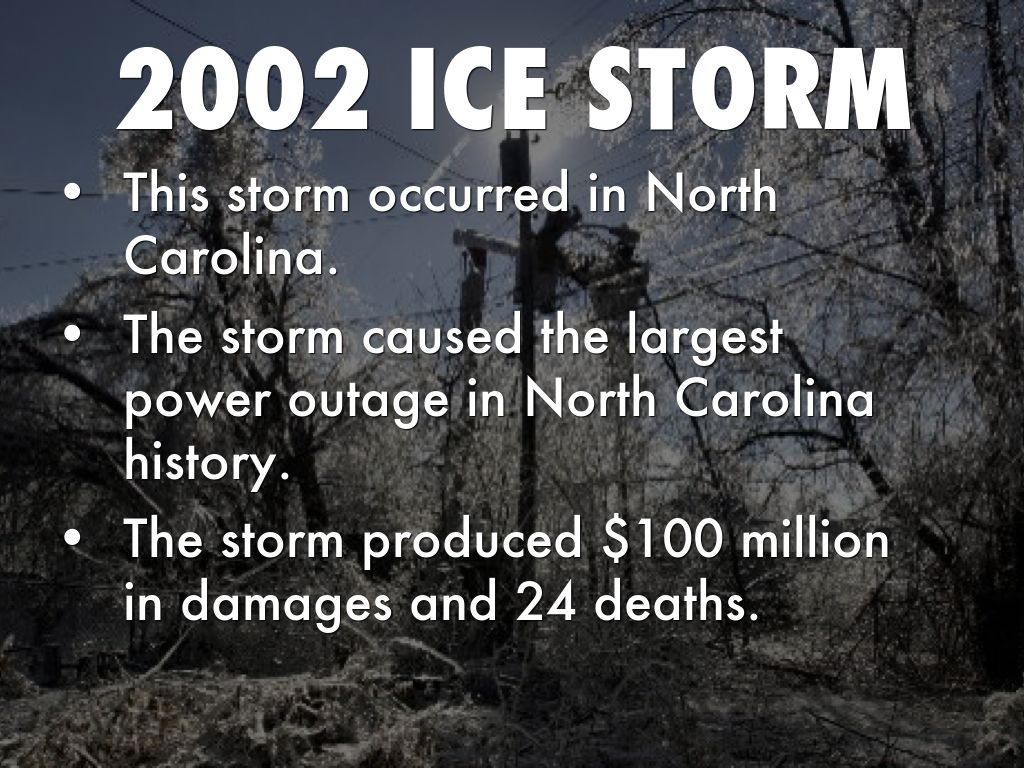 • The storm caused the largest power outage in North Carolina history.