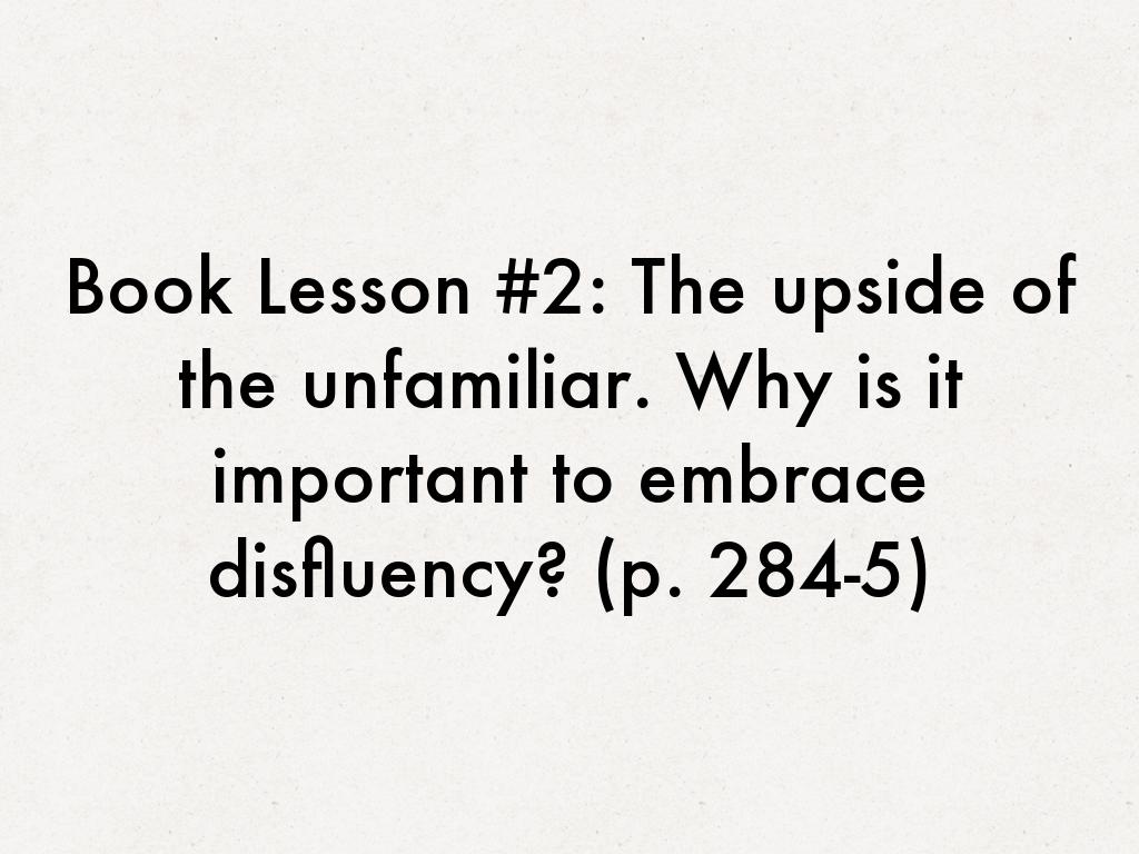 Book Lesson #2: The upside of the unfamiliar. Why is it important to embrace disfluency? (p. 284-5)