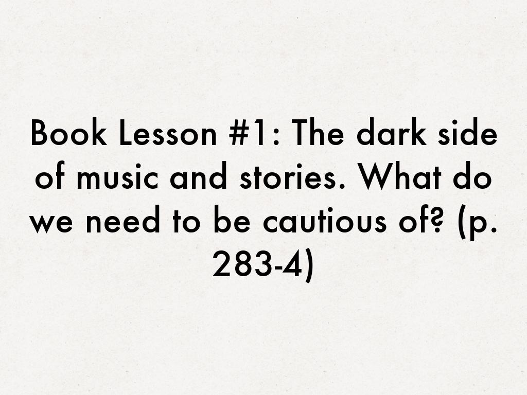 Book Lesson #1: The dark side of music and stories. What do we need to be cautious of? (p. 283-4)