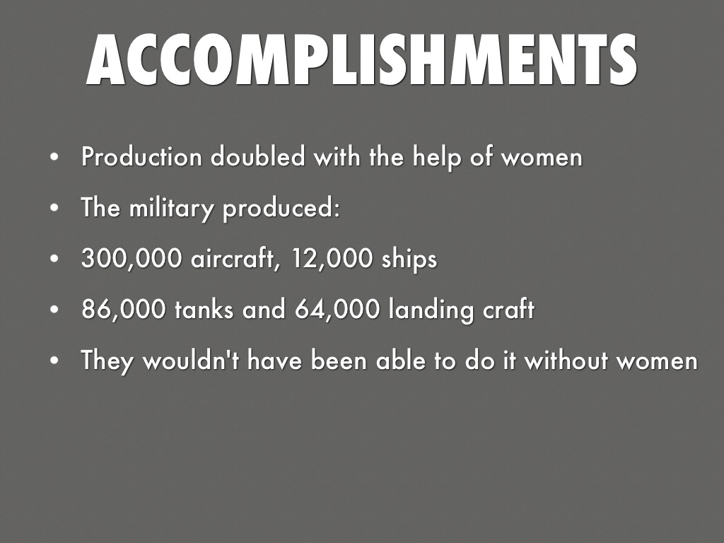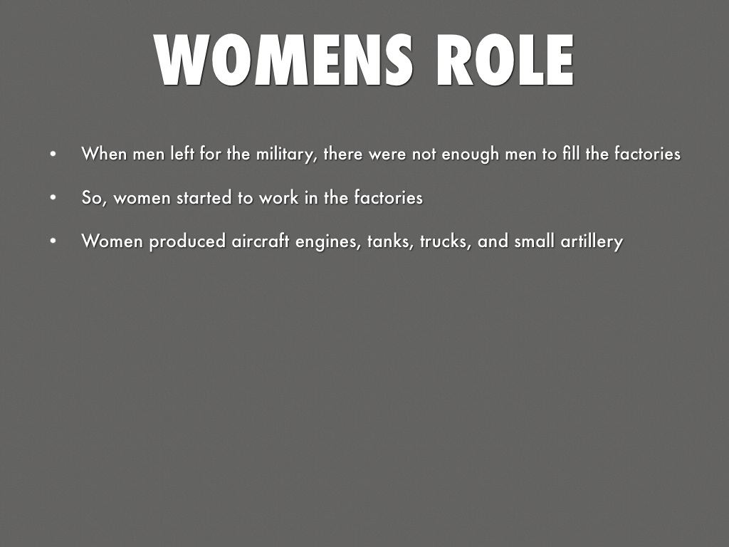 Women produced aircraft engines, tanks, trucks, and small artillery