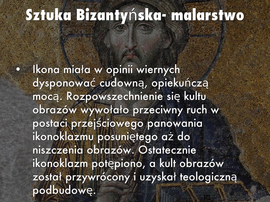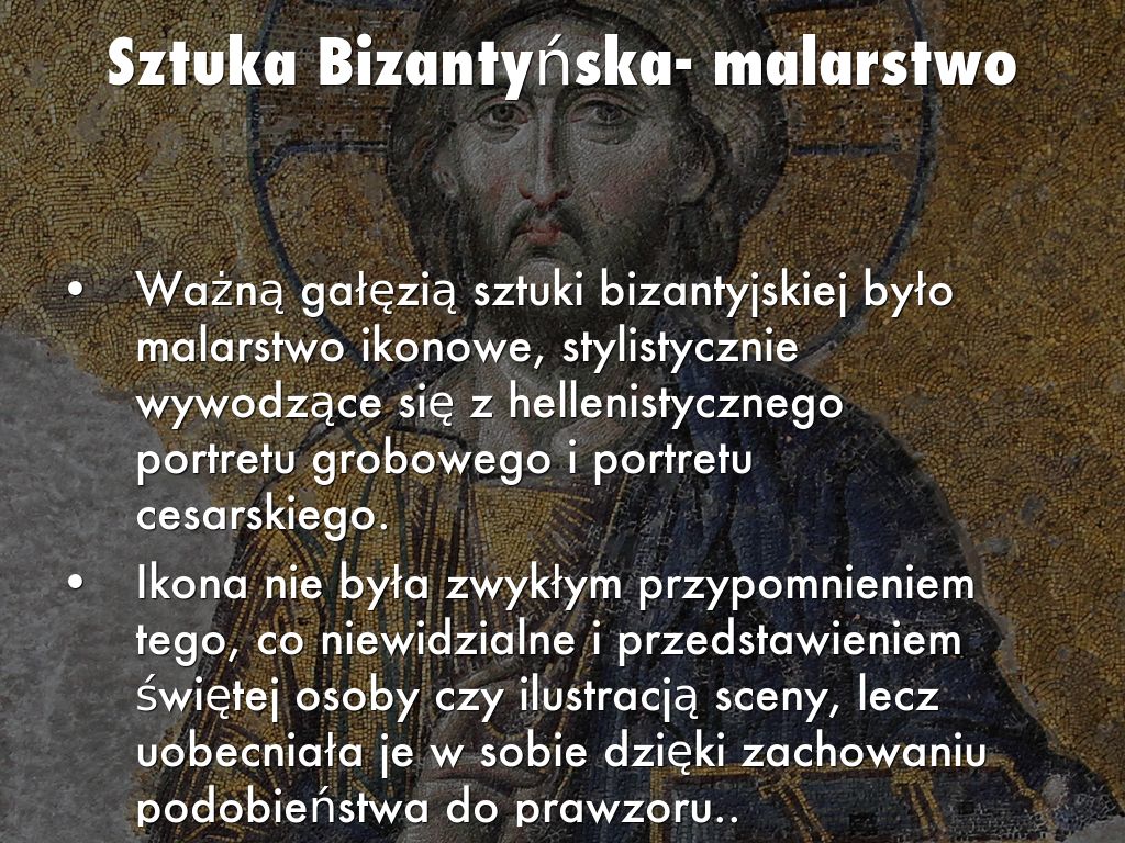 Ważną gałęzią sztuki bizantyjskiej było malarstwo ikonowe, stylistycznie wywodzące się z hellenistycznego portretu grobowego i portretu cesarskiego.
