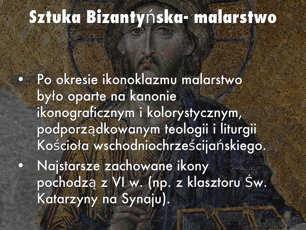 Po okresie ikonoklazmu malarstwo było oparte na kanonie ikonograficznym i kolorystycznym, podporządkowanym teologii i liturgii Kościoła wschodniochrześcijańskiego.