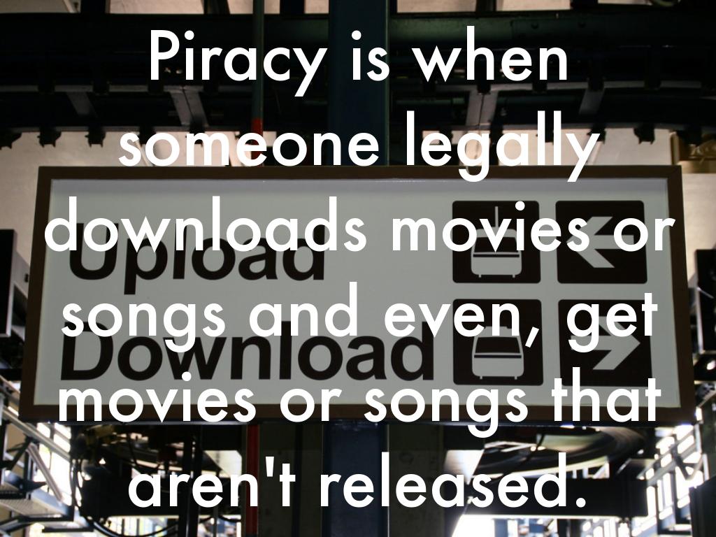 Piracy is when someone legally downloads movies or songs and even, get movies or songs that aren't released.