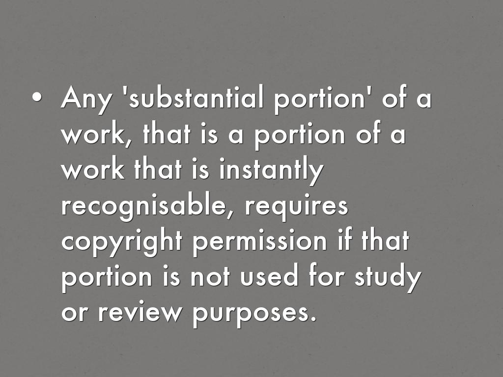 Any 'substantial portion' of a work, that is a portion of a work that is instantly recognisable, requires copyright permission if that portion is not used for study or review purposes.