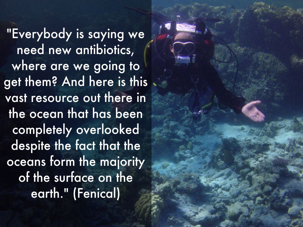 "Everybody is saying we need new antibiotics, where are we going to get them? And here is this vast resource out there in the ocean that has been completely overlooked despite the fact that the oceans form the majority of the surface on the earth." (Fenical)
