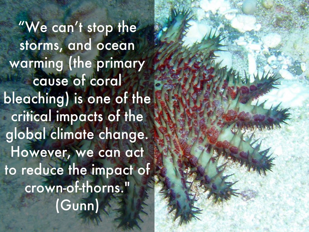 “We can’t stop the storms, and ocean warming (the primary cause of coral bleaching) is one of the critical impacts of the global climate change. However, we can act to reduce the impact of crown-of-thorns." (Gunn)