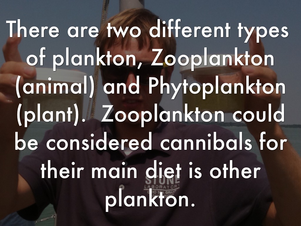 There are two different types of plankton, Zooplankton (animal) and Phytoplankton (plant). Zooplankton could be considered cannibals for their main diet is other plankton.